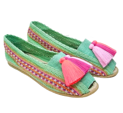 Sé el primero en valorar “Alpargata color verde menta con borlas fresa”