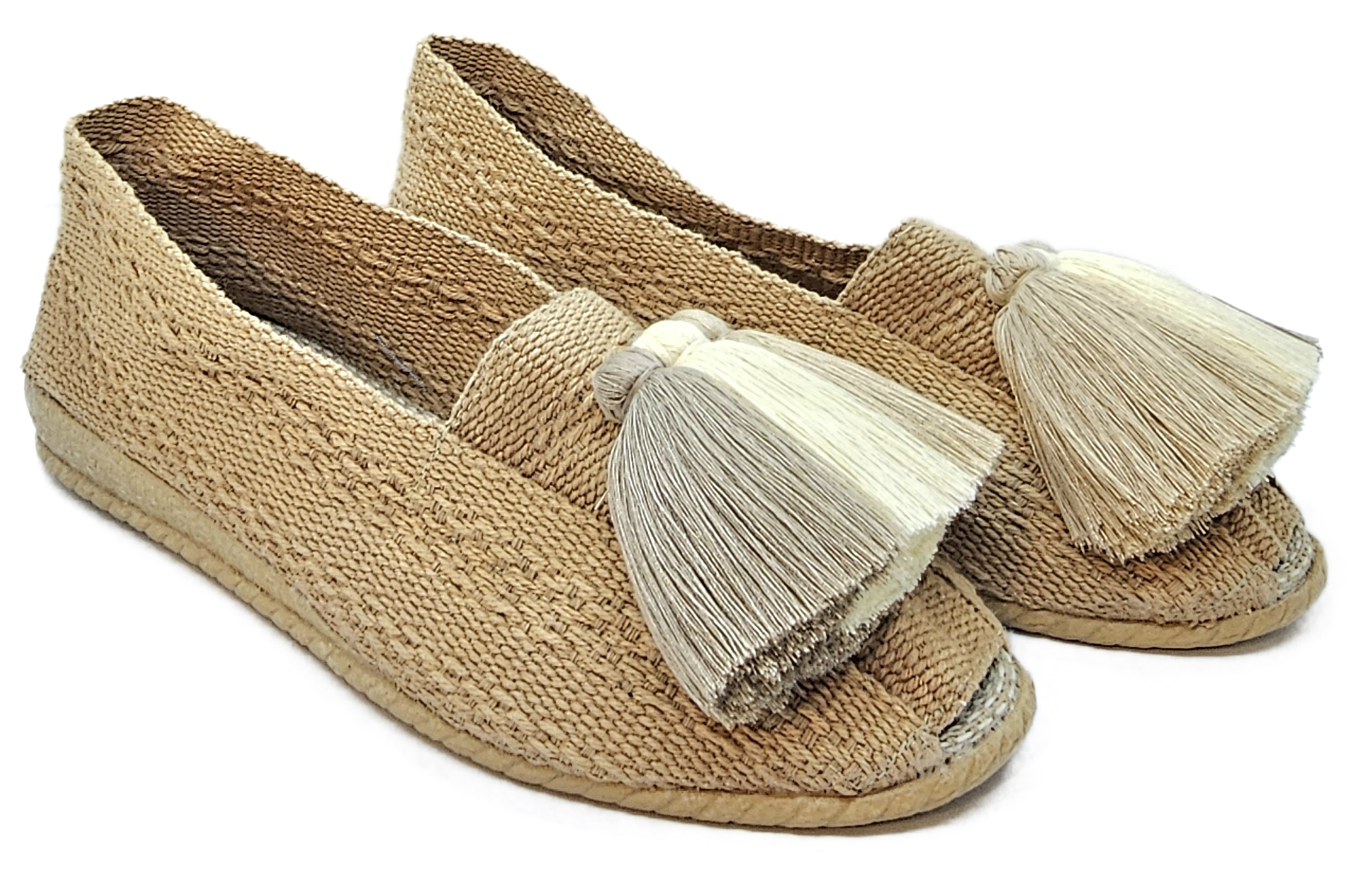 Alpargatas caqui con borlas beige