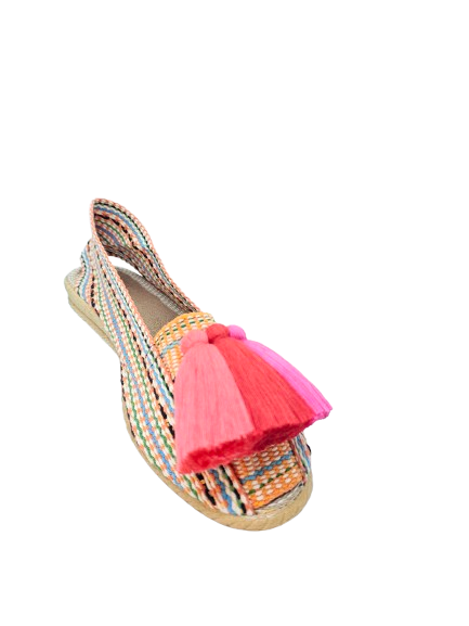 Sé el primero en valorar “Alpargata multicolor naranja con borlas rosa roja amanecer”