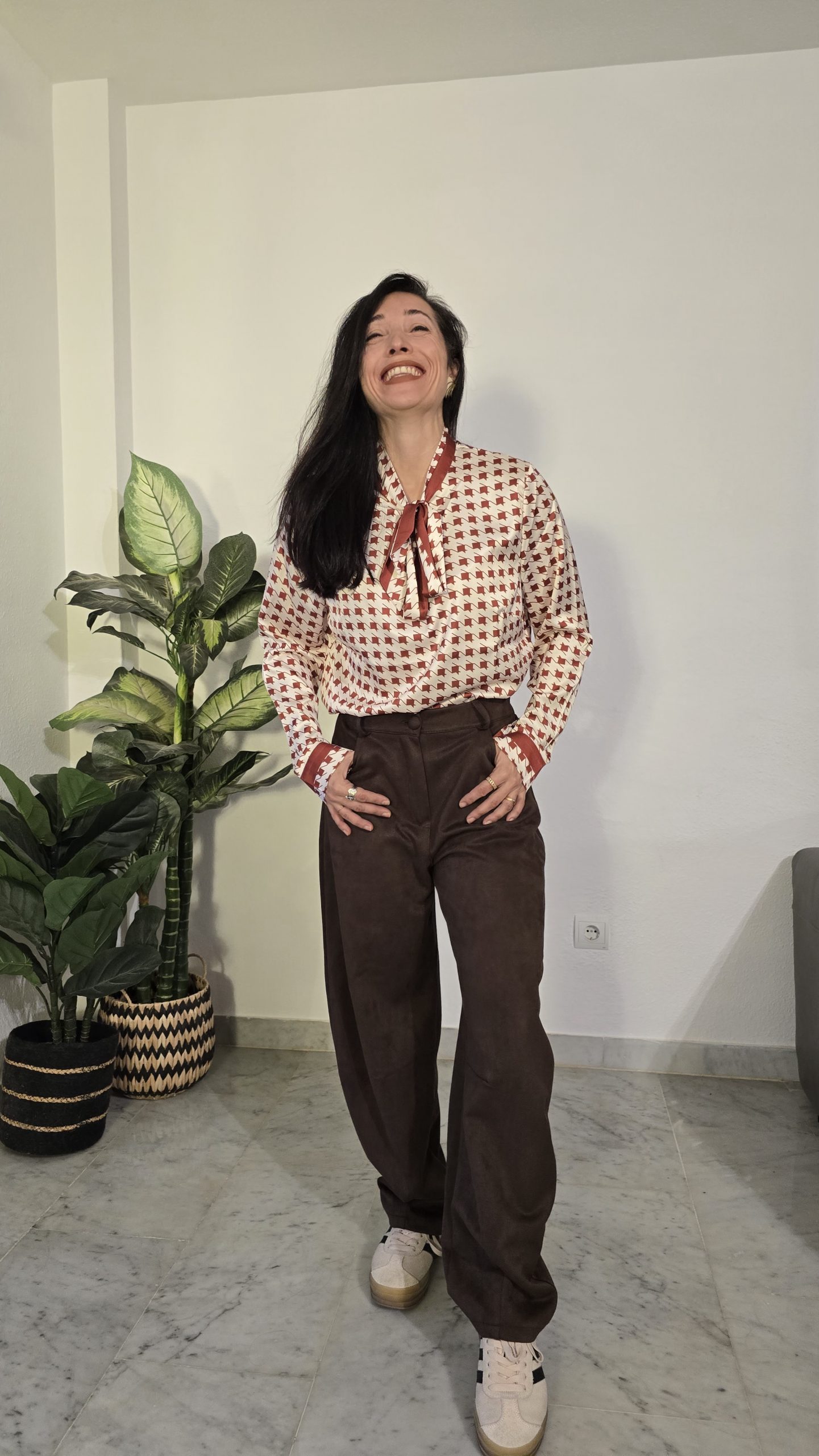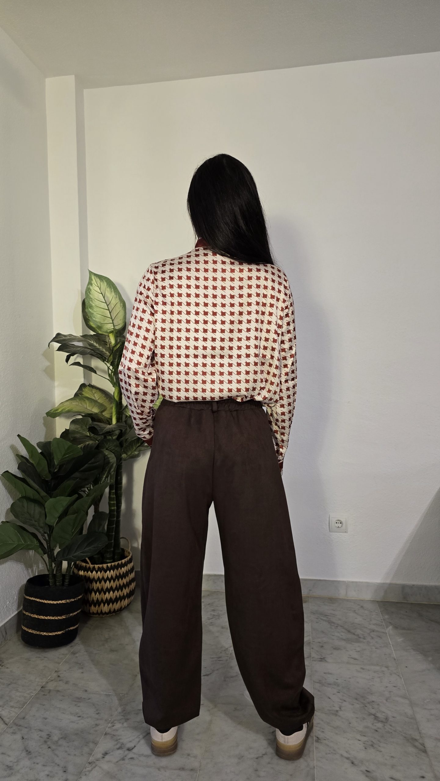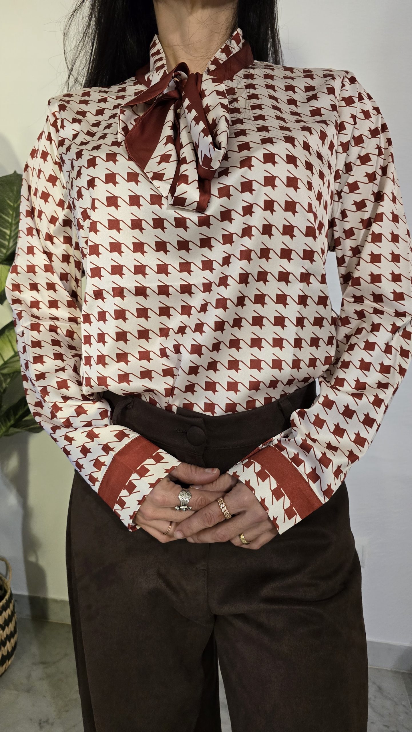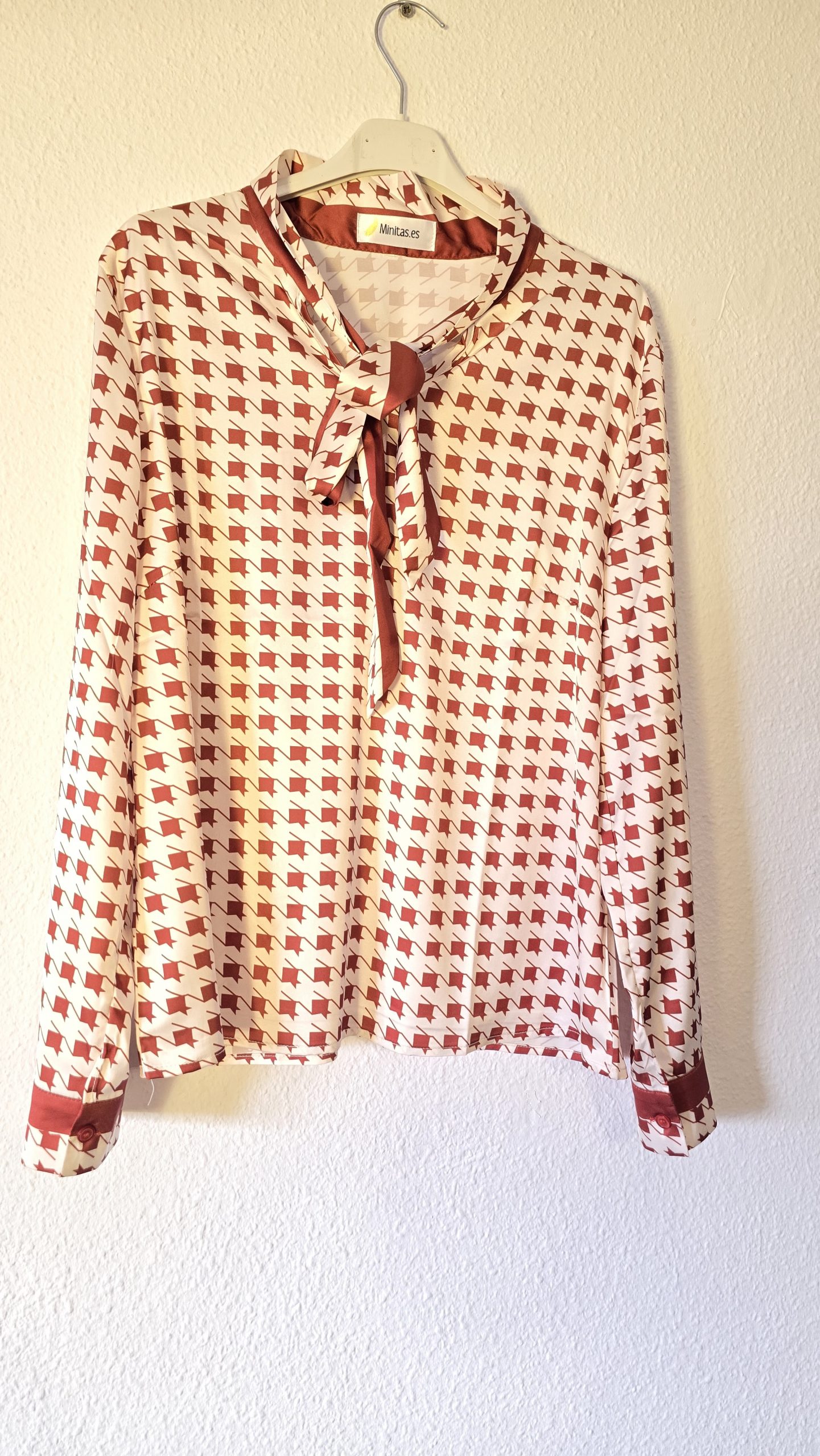 Sé el primero en valorar “Camisa terracota lazo manga larga mujer estampada”