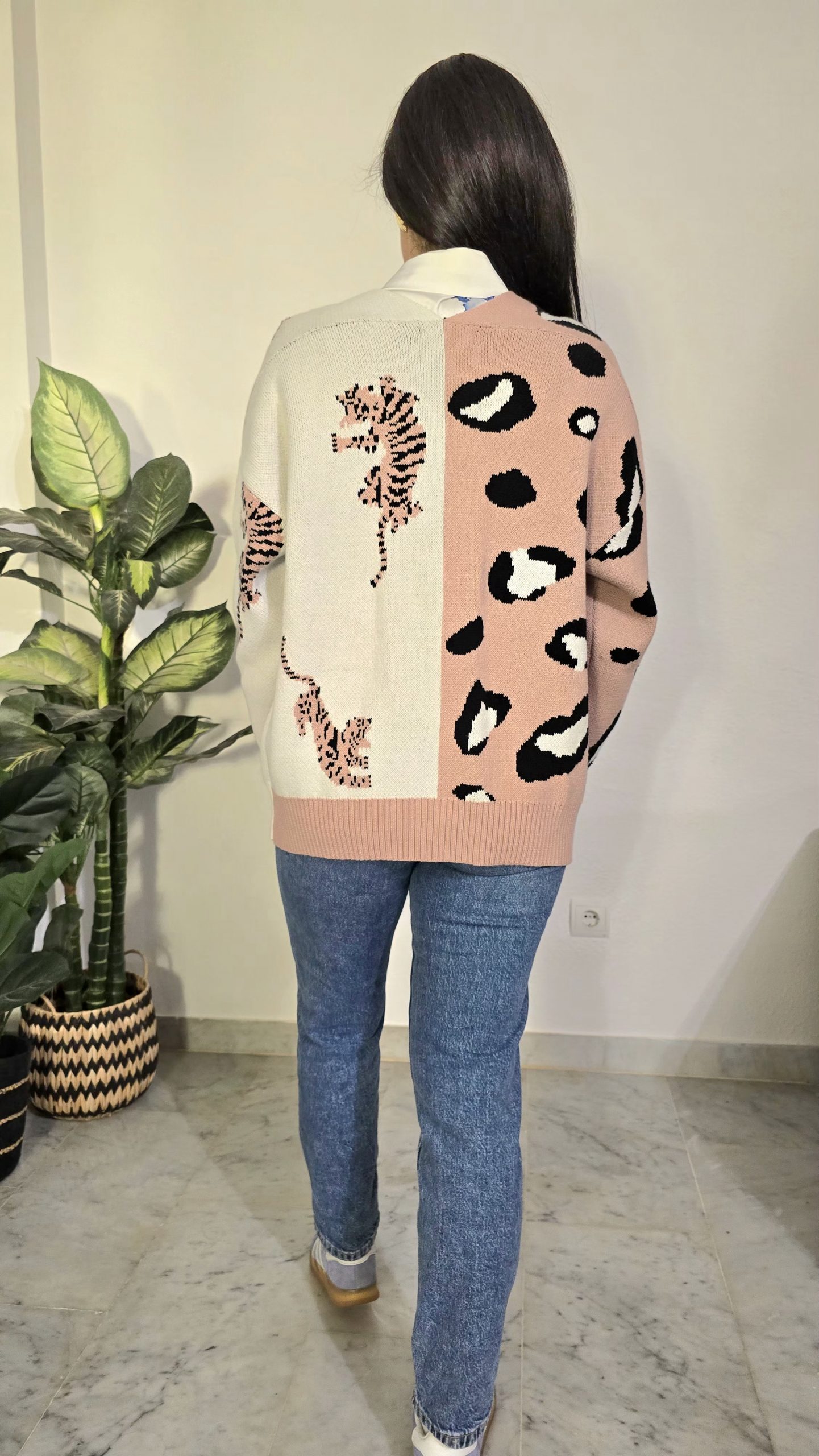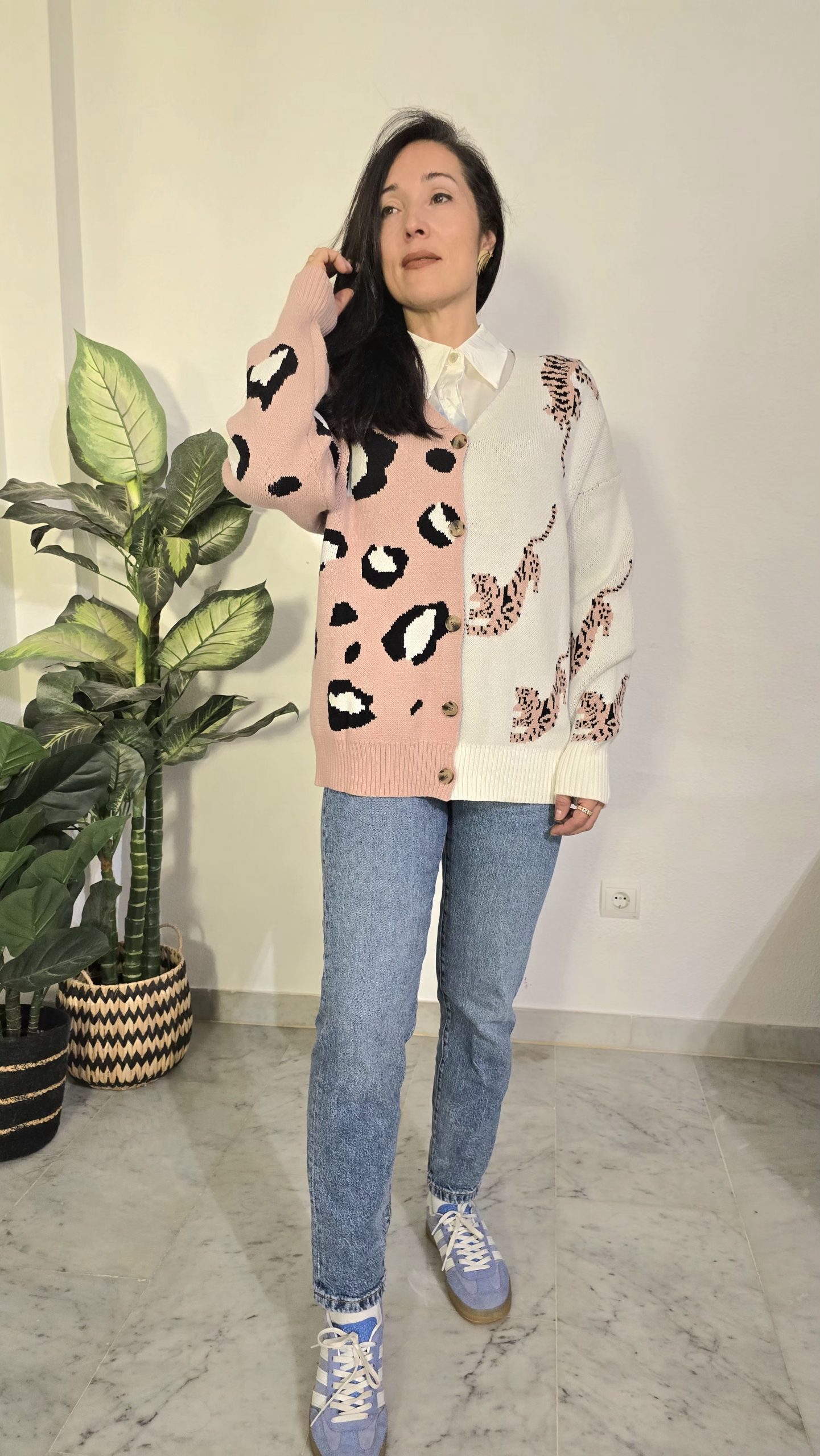 Sé el primero en valorar “Chaqueta rosa blanca tejido suave mujer leopardo”
