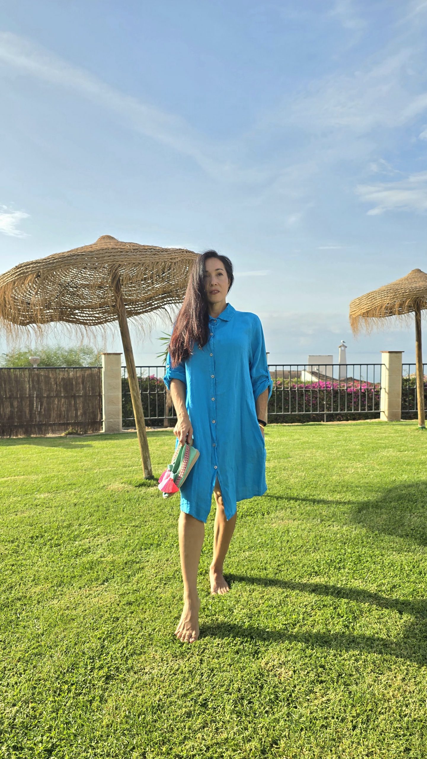 Vestidos de lino 100% natural, estilo blusón corto con botones y bolsillos, frescos, ligeros y pensados para acompañarte durante los días más cálidos. Diseños artesanales con caída fluida y siluetas cómodas que se adaptan al cuerpo con elegancia y naturalidad.