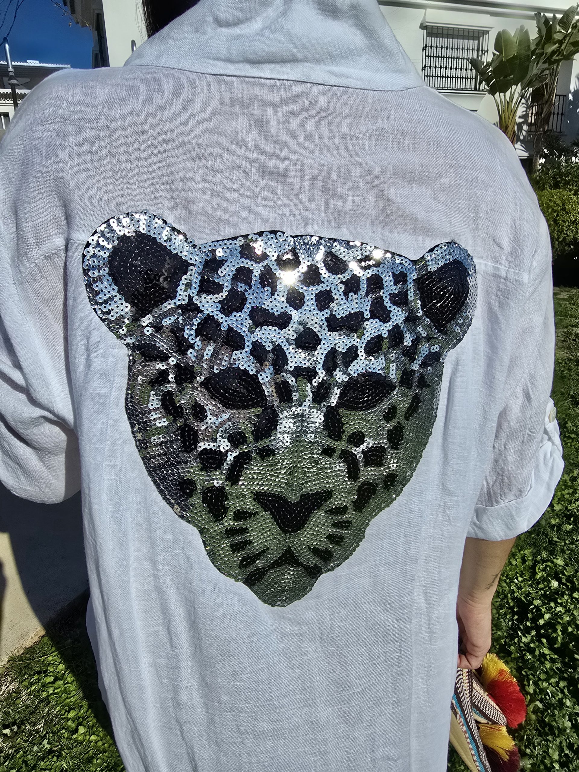 Sé el primero en valorar “Vestido de Lino corto blanco logo pantera plateada”