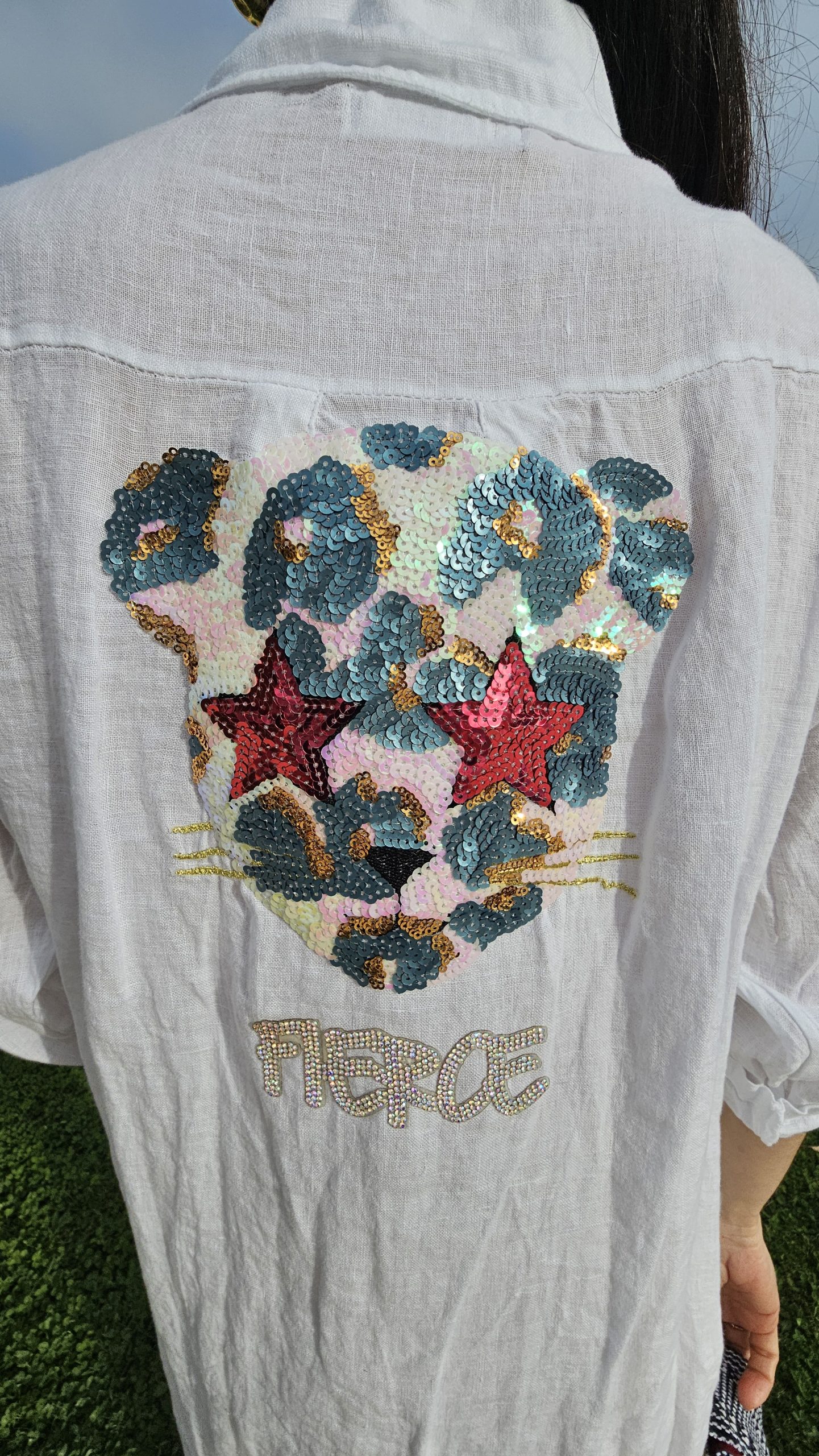 Sé el primero en valorar “Vestido de Lino corto blanco logo leopardo fierce”