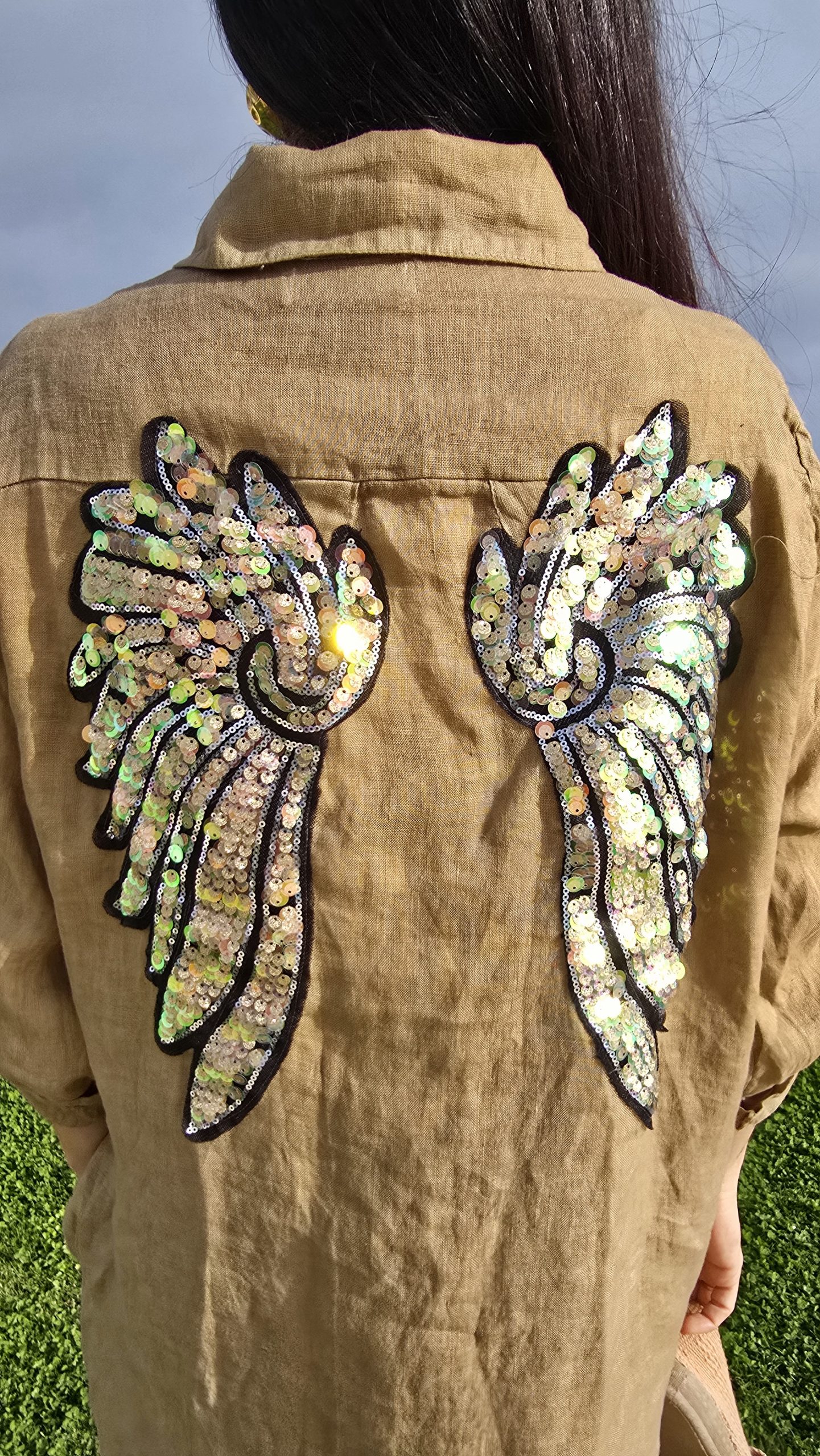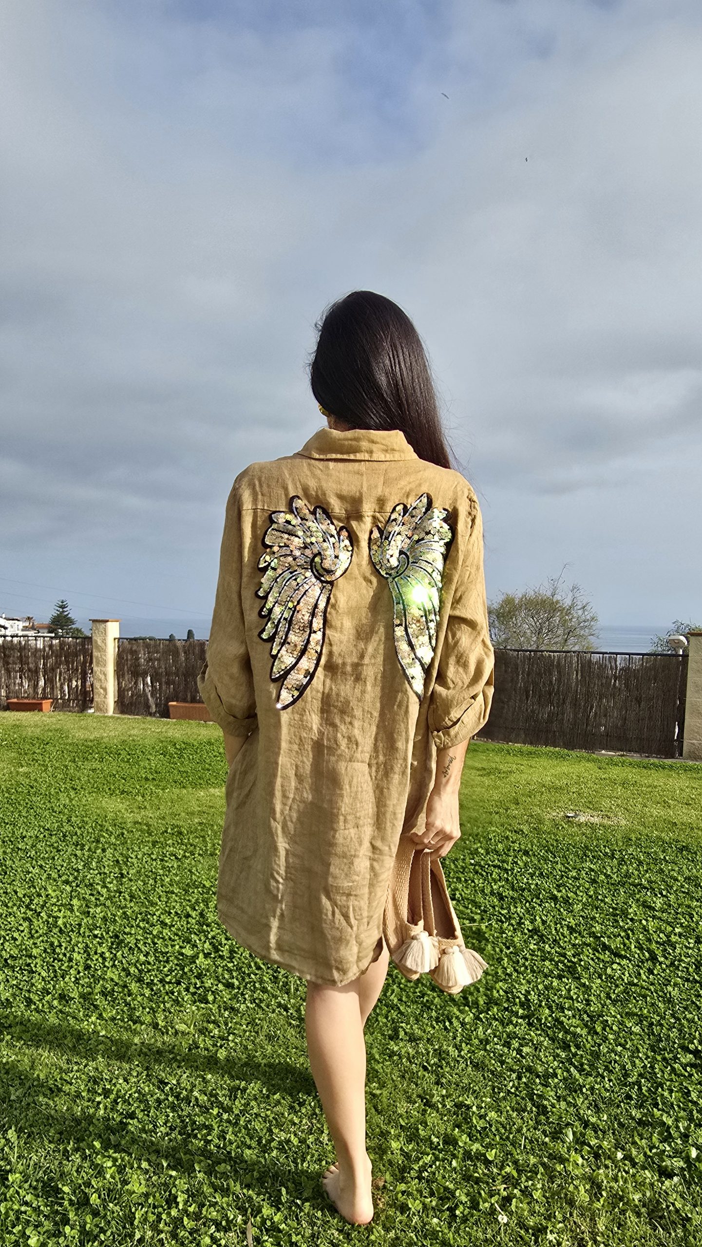 Sé el primero en valorar “Vestido de Lino corto camel logo alas doradas rosa”
