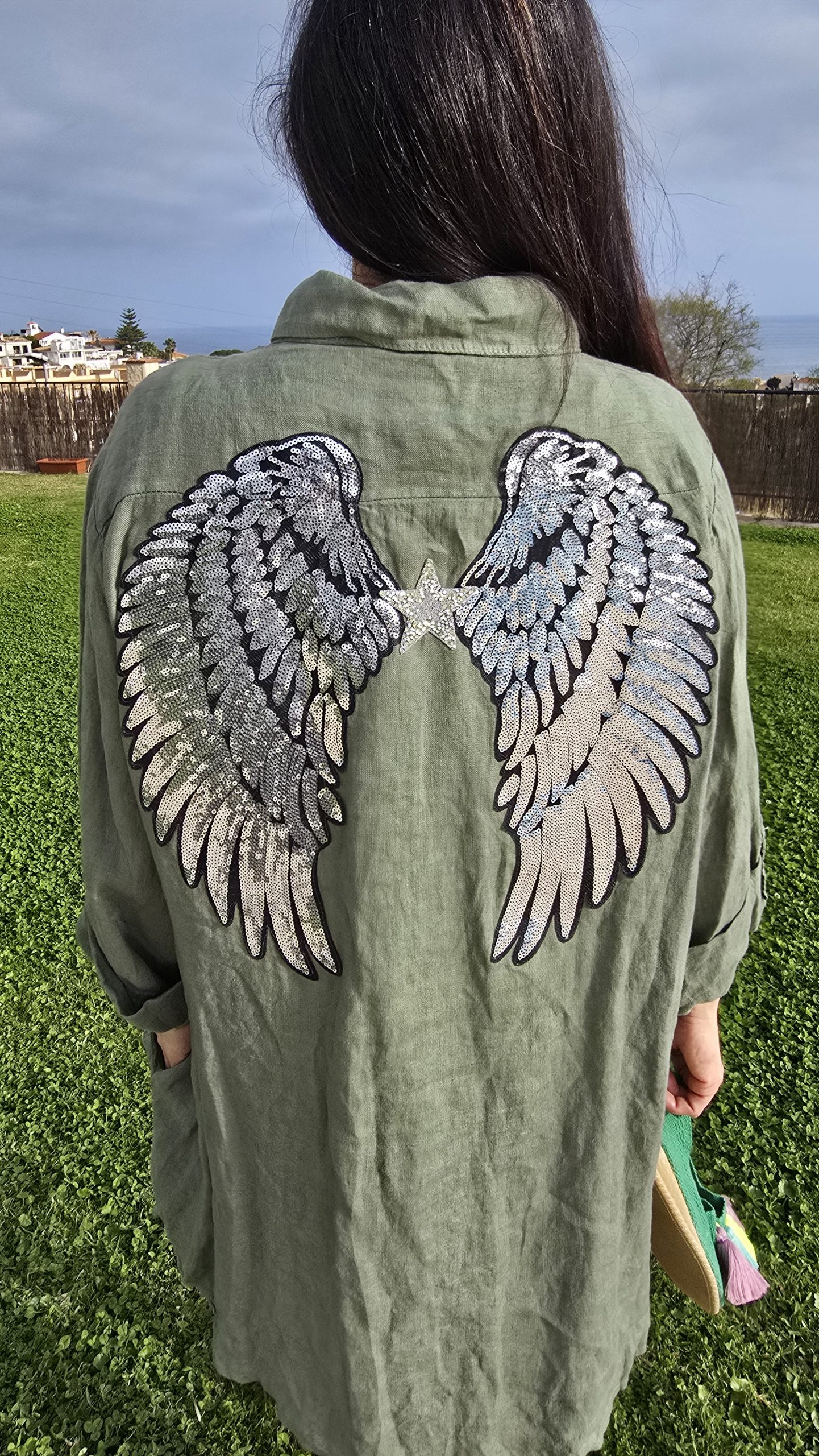 Sé el primero en valorar “Vestido de Lino corto verde caqui logo alas plateadas estrella”